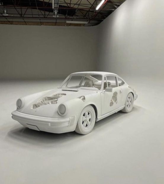 Daniel Arsham is a contemporary artist who doesn't need an introduction these days. Known for his collaborations with luxury brands including Tiffany and Porsche, his works focus on "fictional archaeology" according to Perrotin Gallery (the gallery showing his work at Art Basel this year). Considered one of the must-see artworks at this year's showcase, his Eroded 1975 911 S in Crystal is a full scale replica using his signature sculptural corrosion techniques.