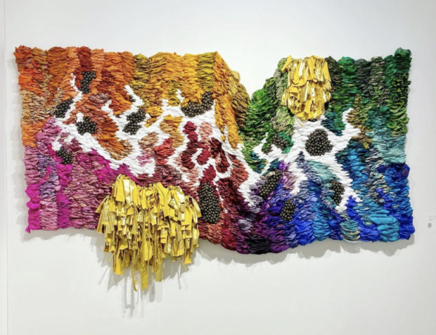 Born in Guyana, South America and of South Asian decent, Suchitra Mattai's work is influenced by her multicultural background and upbringing. Using vintage and found materials in many of her pieces, she brings rich history to her work while navigating her own personal narrative as a minority woman. Her multi medium piece (above) featured by Kavi Gupta Gallery at Art Basel uses a mix of vintage saris, other found fabrics and acrylic paint.