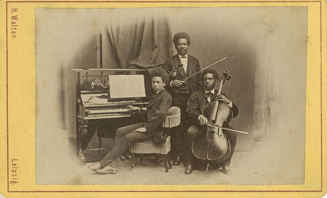 The Gimenez family – comprised of Julian (violin), Manuel (piano), and Measio (cello) – were photographed by H. Walter in Leipzig, Germany, though the date is unknown.
