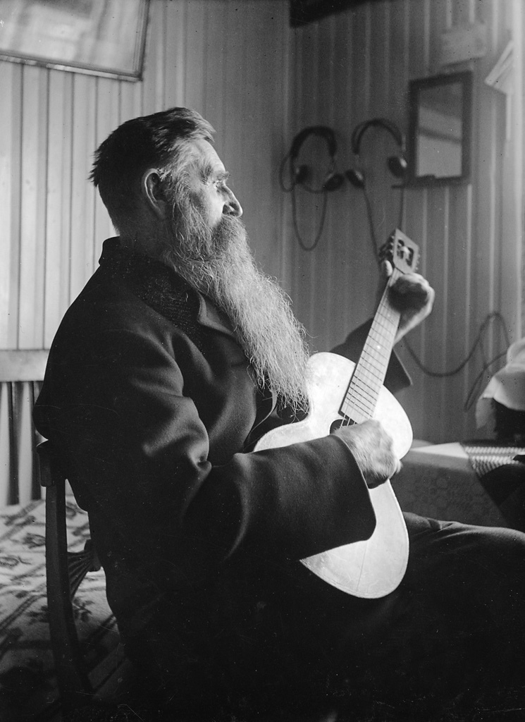 First, let's start with this exceptional beard, seen on Parish Constable August Ländin, who's seen in Åkeshov, Sweden, playing his guitar. Born in 1863, Ländin (and his upstanding facial hair) was photographed multiple times, and can be seen getting up to his usual duties thanks to the Swedish Heritage Museum. At the time, a Parish Constable ("Fjärdingsmannen" in Swedish) was basically a small town cop. Ländin is even used as the example image on the Wikipedia entry for the position, though it seems that when he wasn't enforcing the law, he passed his time playing his guitar.