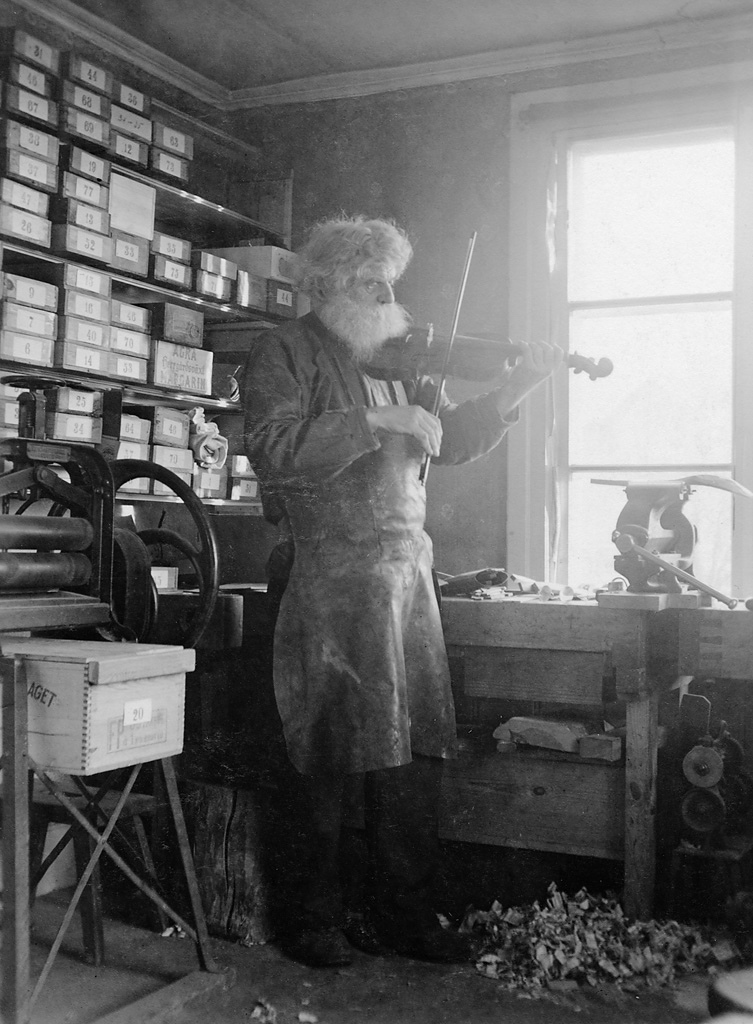 More great facial hair from Sweden, here's shoemaker, woodcarver, and fiddler Petrus Norling in Knivsta, "playing the violin in his workshop," writes the Swedish National Heritage. Norling was born in 1869.
