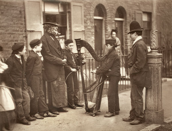 Speaking of street musicians, this image came from a book called "Street Life in London," which delved into the lives of street performers. The LSE library describes the photographer, John Thomson, as "a talented and influential photographer, who had spent ten years traveling in, and taking photographs of, the Far East. On his return to London he joined with Adolphe Smith, a socialist journalist, in a project to photograph the street life of the London poor. The volumes were published in monthly parts as Street Life in London, and were an early example of social and documentary photography." The book was published in 1877, so this photo was from some time before that, and features Italian immigrants, who often came to London to seek greater work opportunities.