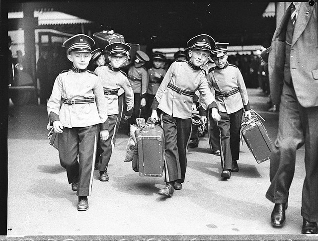 Look at these cute little musicians. The caption for this image reads "Adelaide Boys' Band arriving at Central Railway, 14 January 1937, by Sam Hood." It comes from the State Library of New South Wales.