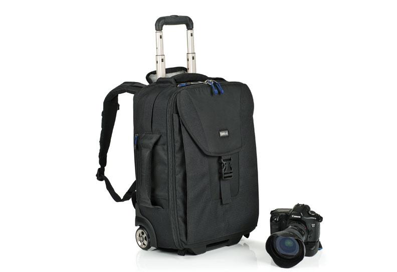 When it comes to travel bags, no one does it better than the team over at ThinkTank. This particular roller-bag holds 2 DSLRs and several lenses, flashes or transmitters. It can fit into the overhead compartment of any plane and still has room for your monopod or tripod and a few personal items as well. Also, if you don’t want to roll it around, just tuck in the handles and pull out the straps to carry it like a traditional backpack. Great bag.