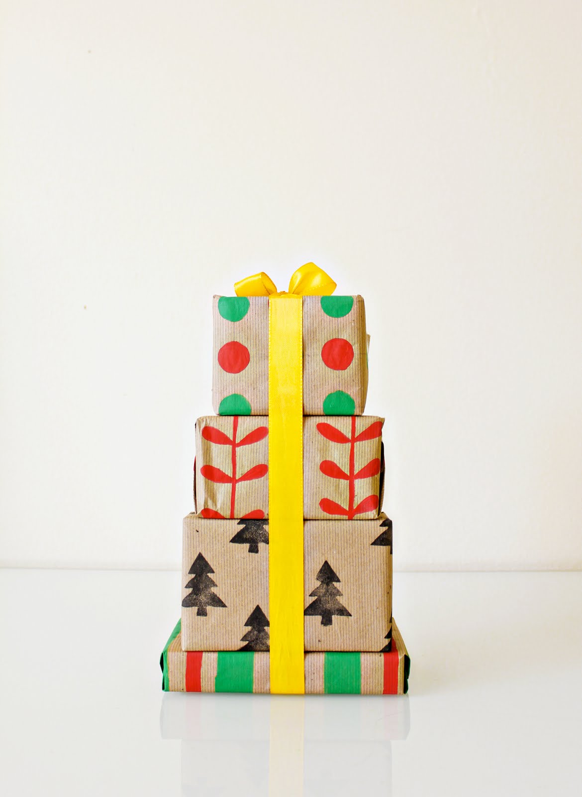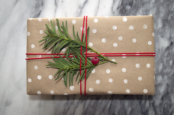 1. Hand-Stamped Polka Dots. Stephanie White really knocked it out of the park when she created this adorable hand-stamped packaging. Her materials are minimal (she used an eraser to create the dots!), and the final look is festive without being overdone.