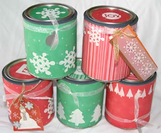 20. Paint Can Gift Wrap. For a quick, inexpensive, but unique gift bag idea, try an empty paint can from the hardware store. It can be a sturdy alternative to the traditional paper gift bag. Add your goodies inside and seal the lid. Trim your gift with a festive bow.