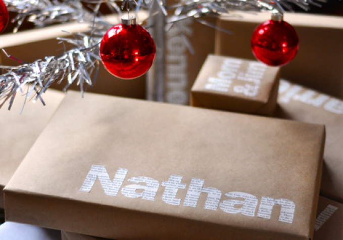 2. Typographic Gift Wrap. Back in 2010, ManMade posted this sleek intersection of gift tag and gift wrap, and the look still feels fresh. Over on the ManMade blog, you'll get an in-depth guide for replicating the look.