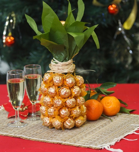 15. Pineapple Surprise. Looking for a perfect hostess gift? Brighten up any holiday party with pineapple packaging. Who doesn’t love champagne and chocolate?