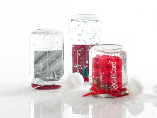 16. Snazzy Gift Card Snow Globes. Giving just a gift card often isn’t much fun. One Charming Party has an excellent suggestion for stepping up the gift card game and packaging it into a winter wonderland snow globe!