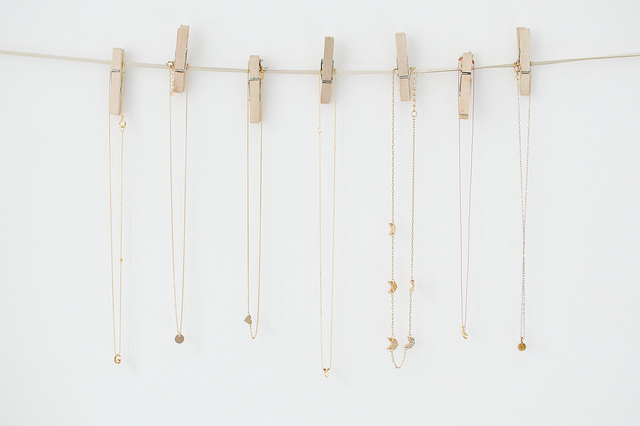 Whether you're taking some product photos, or you just want to set aside something that's finished, this clothespin trick is easy, beautiful, and inexpensive. Also on this particular DIY storage solution, you could hang letterpressed cards that need to dry, paintings...or basically anything.