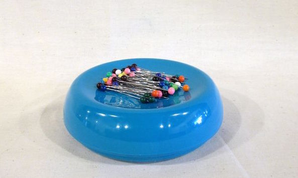 4. Pin cushion. Shaerie prefers a magnetic pin cushion above the classic fabric cushion for a couple of reasons. Not only do they make it easy to pick up any pins you drop, the magnetic cushion help you work faster, “when you are sewing you have to pull your pins out and stop what you are doing to stick the pin in the tomato, that small action takes up enough time that I am willing to spend a little more money and get a magnetic pin cushion.Then I can just throw my pin at it and I don’t have to worry about it.”