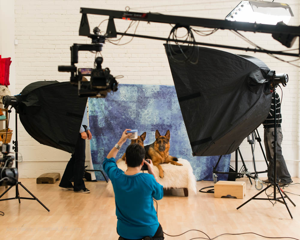 People often prefer a “flat” lighting when it comes to their animals. Whereas portraits of people demand a more dynamic light, which can create shadows to help give perspective, people often want a simpler, brighter light with their companions. This style of lighting helps pet owners see what they really want to see — their pet’s face. Meter your main light and use a little less fill light than you would with people. Remember: It would be a shame to accidentally mask that cute little brown patch with a shadow created by using more complicated lighting.