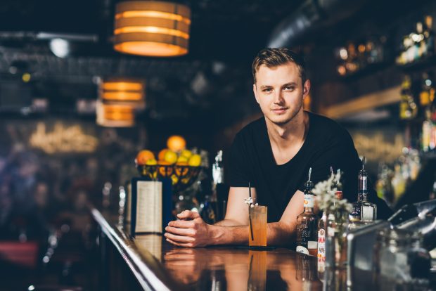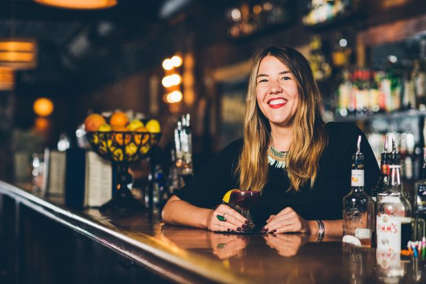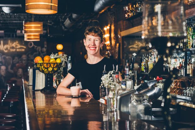 When stopped down to f/6.3, you can see that a lot more of the background is in focus. This image focuses a little more on the bar itself, rather than just the bartender, because more of the environment around her is visible.