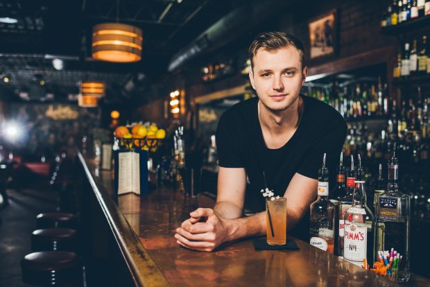 This image, shot with an 85mm lens at f/2.5, blurs out most of the background of the bar. The combination of the longer focal length and the extra-wide aperture leaves very little of the background in focus. This is useful if you really want to isolate your subject, and creates a portrait that’s very centered around the person.