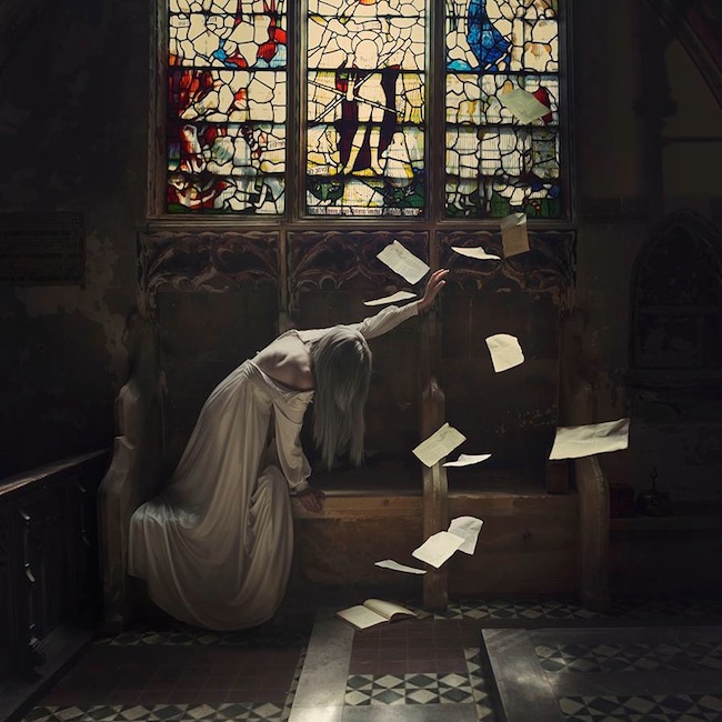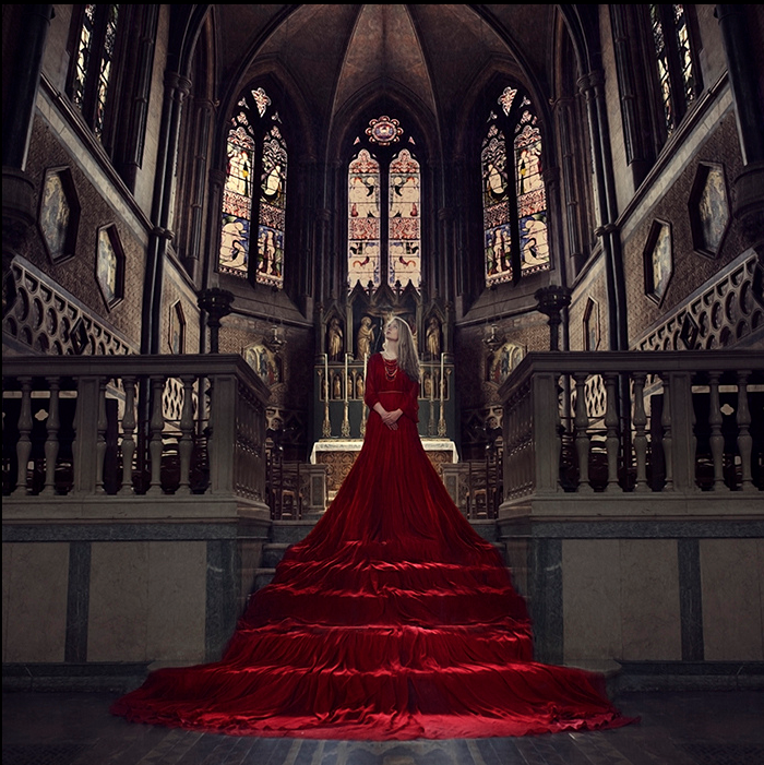 I was lucky enough to model for Brooke during her London workshop earlier this year, and to witness first-hand how she created ‘Sacrifice.’ The deep red dress was long, but not long enough for Brooke’s vision in which the dress rolls down the church steps like blood. By photographing the extra pieces of dress in position, Brooke illustrated how the styling she desired can be constructed — emphasizing the importance of having a plan from the start.