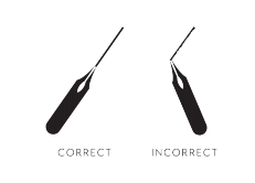 1.) There are distinctive parts of the nib and pen and you should know them. Before you even begin stroking, you need know what what you're dealing with. The actual tool you'll be using is two parts -- the pen holder and the nib. You can purchase a variety of both, but for a beginner, a basic pen holder (either oblique, which is bend, or straight) and a basic nib are fine.