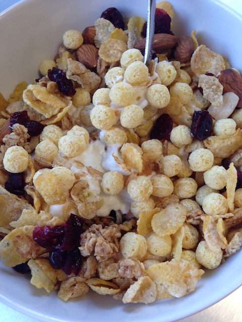 Lara: I love vanilla almond milk. greek yogurt is good, too. Adding yogurt, fruit and nuts to the mix is a much different experience versus milk. This allows the user to eat cereal multiple times throughout the day without it feeling boring or repetitive.