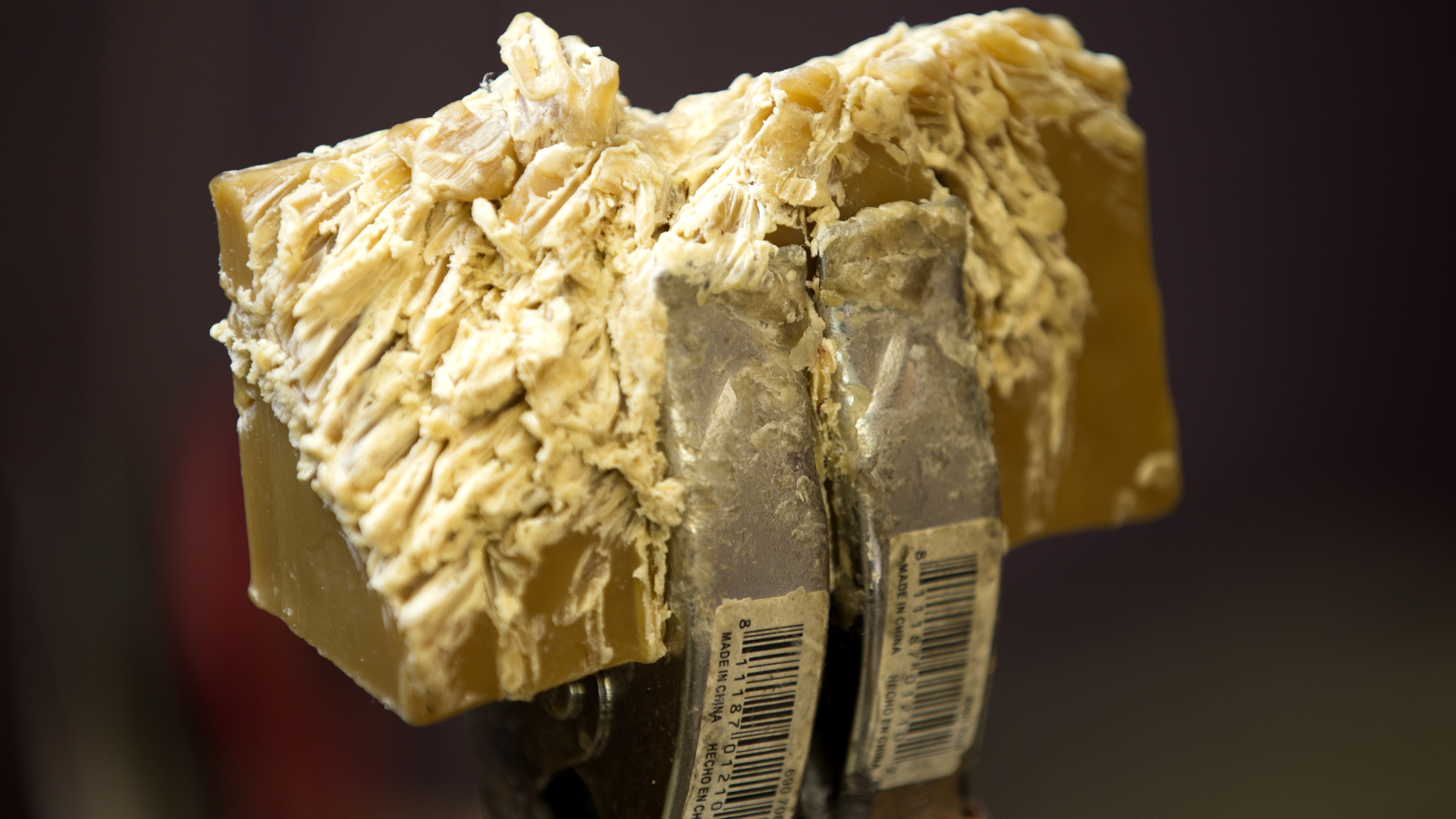 Each book is filled with handmade paper and then hand-sewn with twine. "All the books are stitched with one long piece of hemp twine," say Mychal. To ensure the twine doesn't break, it's rubbed over and over through a giant block of beeswax to make sure it's coated enough to stay strong as it's sewn through each of the holes in the book's signatures and cover.