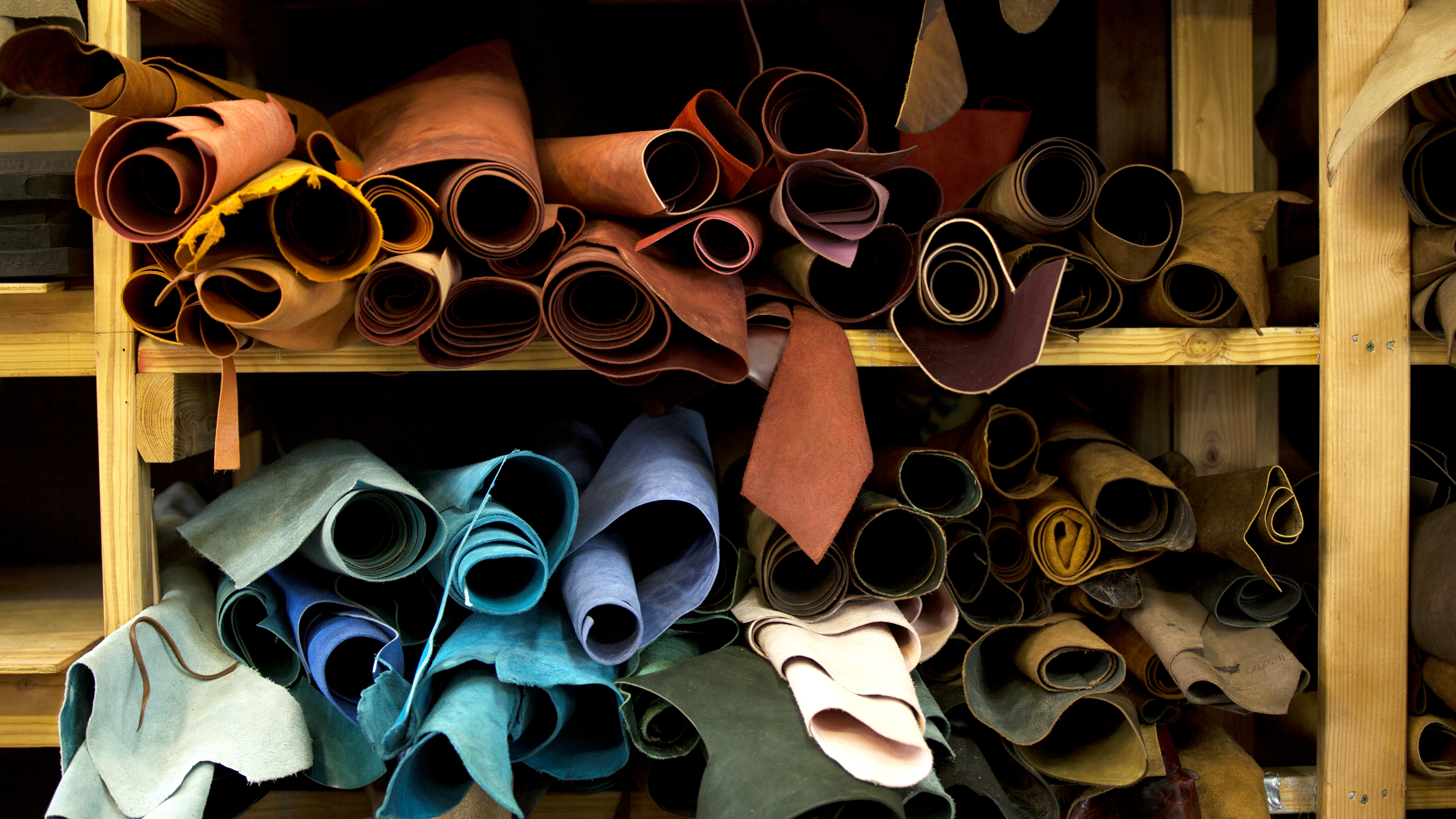 Mychal also fills custom orders. You can pick from a wide variety of surplus leather remnants that she gets primarily from boot makers and handbag factories. Also you're not relegated to traditional browns and blacks - her leather comes in all colors of the rainbow, with a variety of fun textures to explore as well.