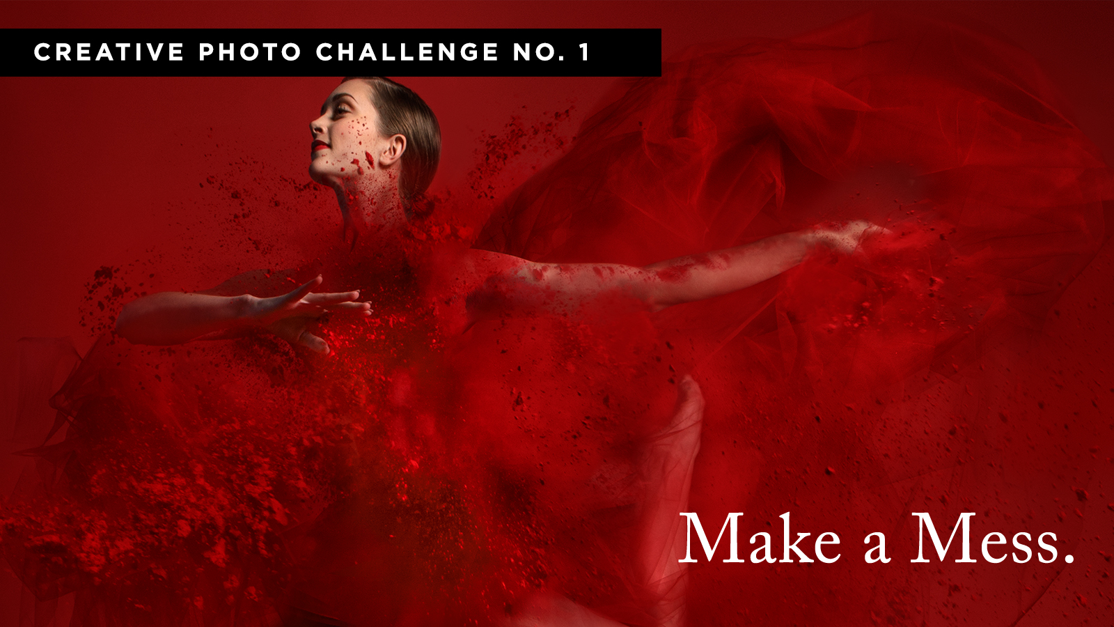"Your challenge is to make a mess! Make a glorious mess! Abandon control and order to get more creative and come up with something unexpected. Cover your subject in flour and make them dance. Play with glycerine, water, paint, feathers, anything! Just be sure to create beautiful chaos!