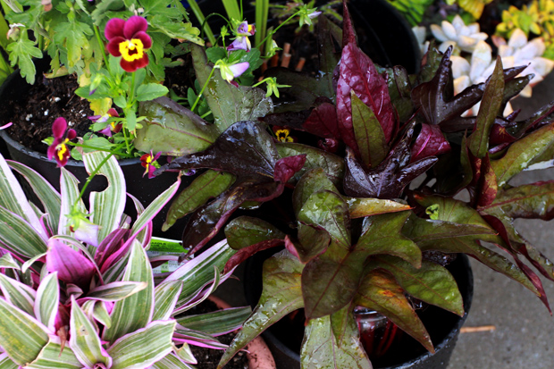 For an unexpected, but tasty twist, try potting up purple cabbage or the delicious black tomatoes, ‘Indigo Rose’. There is a beautifully black ornamental sweet potato called ‘Illusion Midnight’ which has pretty purple blossoms, and roots easily from cuttings, but despite being a tater, isn’t really suitable for tasting.