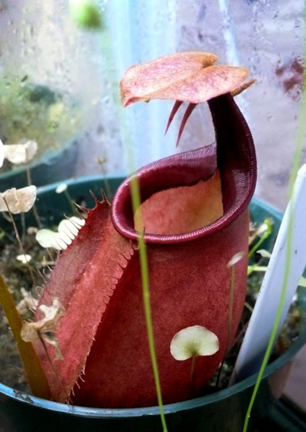 If you are willing to commit to a terrarium in the window for Halloween, the Nepenthes bicalcarata is a fanged carnivore that looks as if it will clamp its jaws down on prey! It’s a menacing beauty that loves warm temps and high humidity.