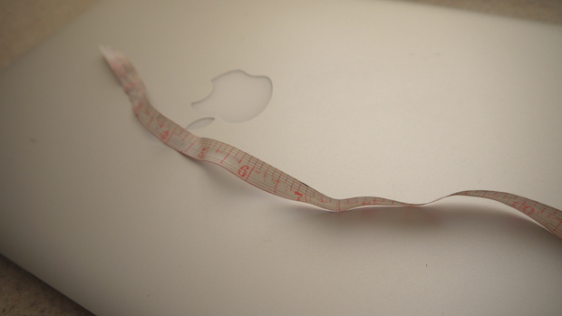 Measure your device, and cut your materials. Your fabrics will all be different sizes -- the shell will be large, while the shell and batting will be smaller. You need enough of each material to cover the whole thing and leave you some room to do your sewing. These are approximate measurements for my MacBook Air (12in x 7.5in), but they worked well.