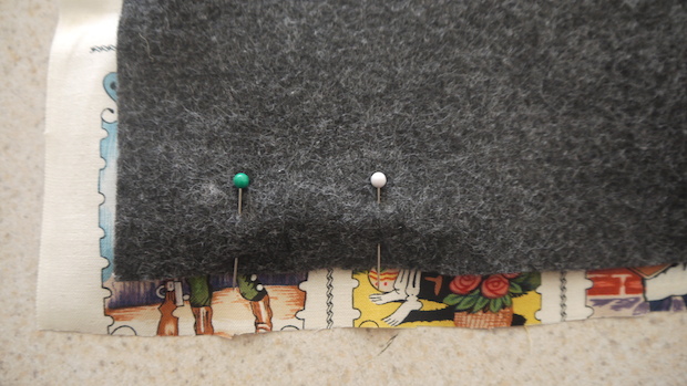 Once you've got your material cut, line up the liner and the shell. You'll want to sew the material on three sides in a way that you can turn it inside-out (if you've ever made a pillowcase, this should look familiar). Pin them to ensure a straight seam.