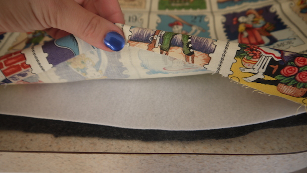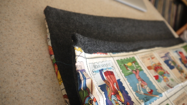 Iron the extra shell material over the open edge, sealing in the batting and making what will be the top of the opening of the case look nice. Sew it up.
