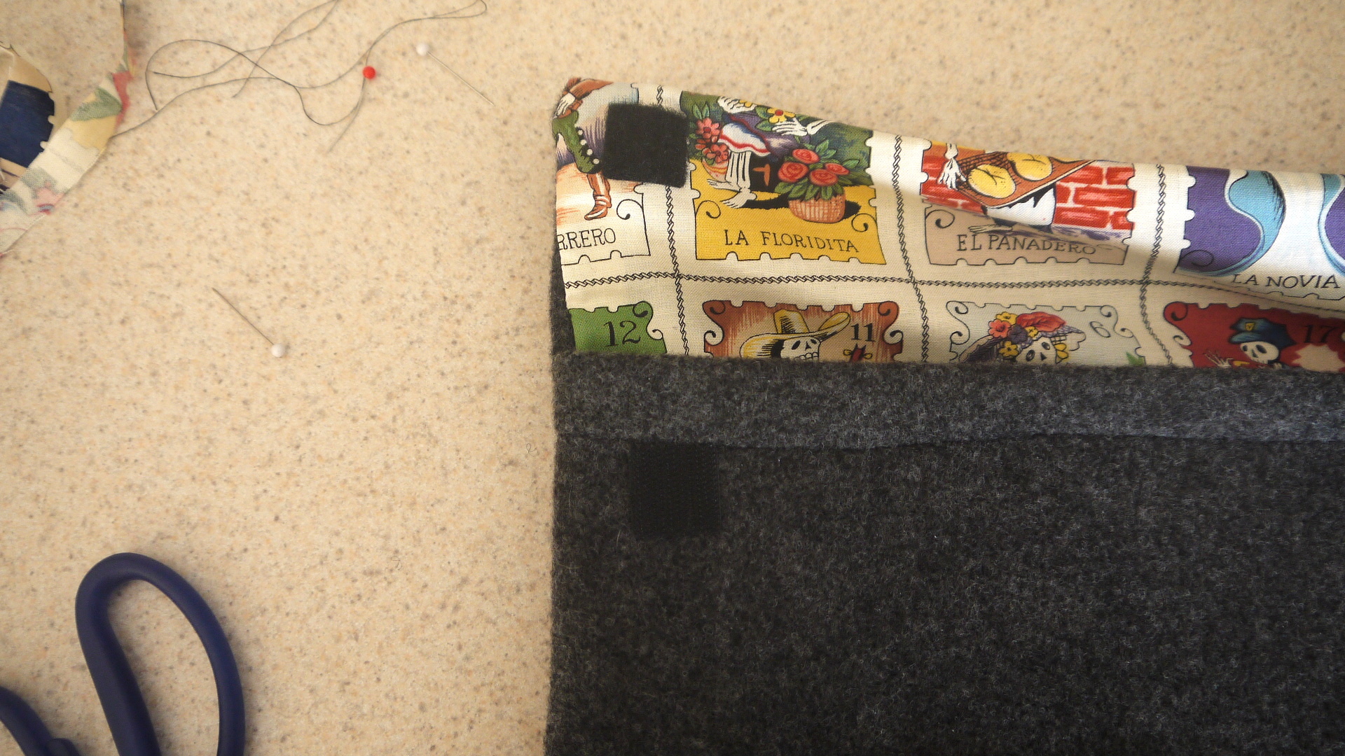 Turn the case right-side out and you're done with the sewing bit! Now, affix your Velcro. I used self-adhesive Velcro, but adhered it with additional fabric glue to ensure it wouldn't come off. You can also sew the Velcro on, or simply fold the case over. You can also add a button and an elastic-tie closure, or basically anything else you want.