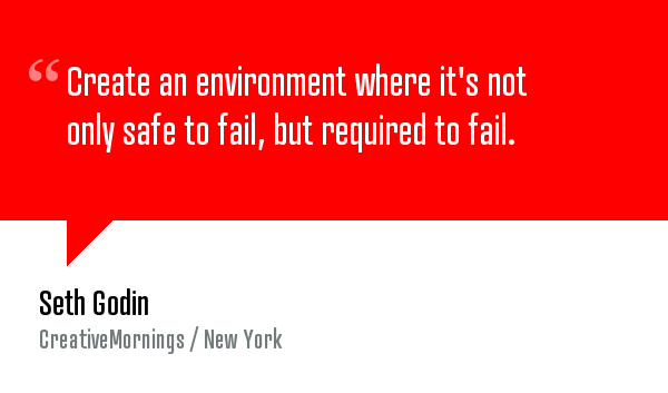 Of course, almost every successful creative person has at least one story of failing spectacularly, and, if they're savvy, they've also drawn at least one salient lesson from that particularly low moment. But the problem for most people is that fear and failure are so conflated, that a fear of failure becomes an inability to even try anything new.