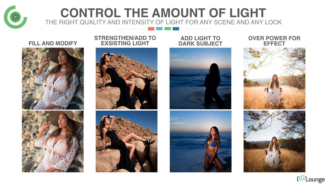 3. Control the direction of light. The placement of the subject relative to the light source determines the final look of an image. When you use flash you have a lot more flexibility in where you place your subject.