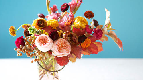 But it doesn’t have to be that way! A few floral design tricks and a little sleight of hand will help you create a holiday centerpiece (or really, a floral arrangement for any holiday) that you’ll be proud to prominently place on the dining table. Or alongside the gravy on your Thanksgiving buffet, whatever the case may be.
