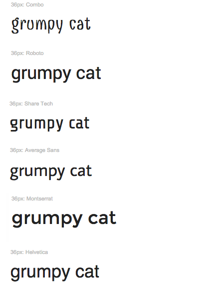 Many questions arise. Isn’t Roboto more like Helvetica than Montserrat, what gives? Average Sans and Share Tech are similar to each other, but are they really the same amount of