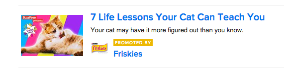 Some websites build it into their web design. Consider the team at BuzzFeed, who have been extremely successful at creating sponsored content that appears right in line with their brand and voice, but is paid for by companies who want to advertise to their behemoth audience.