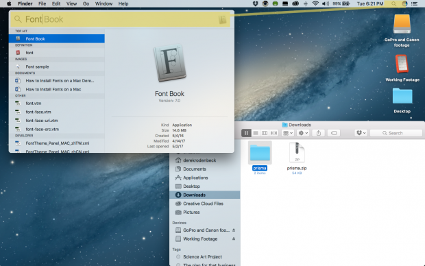 Font Book is an application that helps users, install, organize collections, and manage fonts. I’m usually doing 100 things at once, so I love to use it. Anything that can make a task easier, I’m game! This is my favorite method.