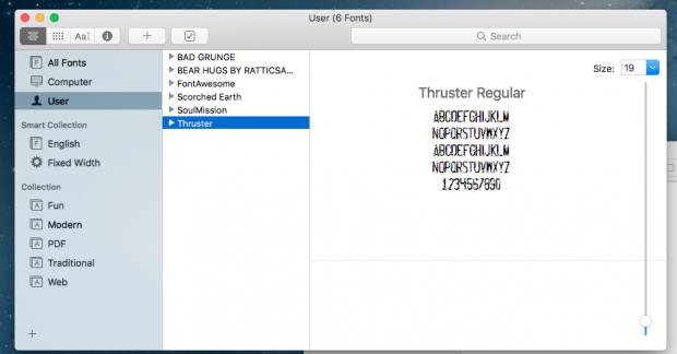 - Font book will automatically install the font by default into the user folder in your collections column. This is on the left side of the font book window. The font will only be usable to the user the file was installed under, if you want the font to be usable for all users it needs to be installed to the computer collection above it.