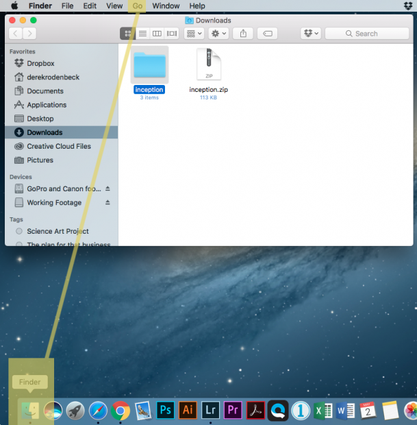 Step 3: Using the tool bar at the top of your screen select the Go tab, it is in between the View and Window buttons.
