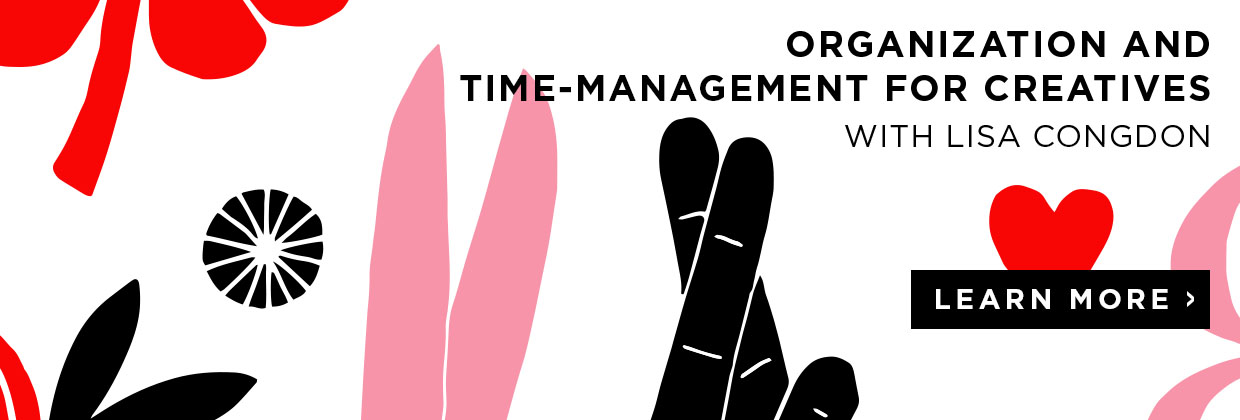At the end of each workday, take a few seconds to straighten up, move things back to their zones and think about if anything didn’t feel ergonomic that day when it came to your physical setup. Your workspace should be doing just that — work — for you. Pay attention, as you make the above adjustments, to what’s making you comfortable, productive and creatively fruitful, and shift accordingly.Need help getting organized at home? Lisa Congdon's class will help your maximize your productivity when working-from-home.
