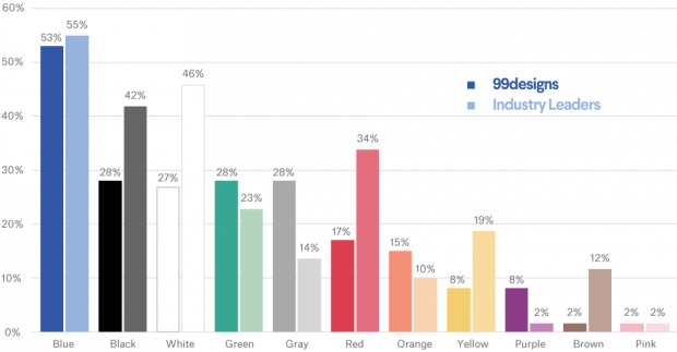 A recent 99designs analysis found that the color blue is used in a whopping 55% of logos across all industries.[/caption]