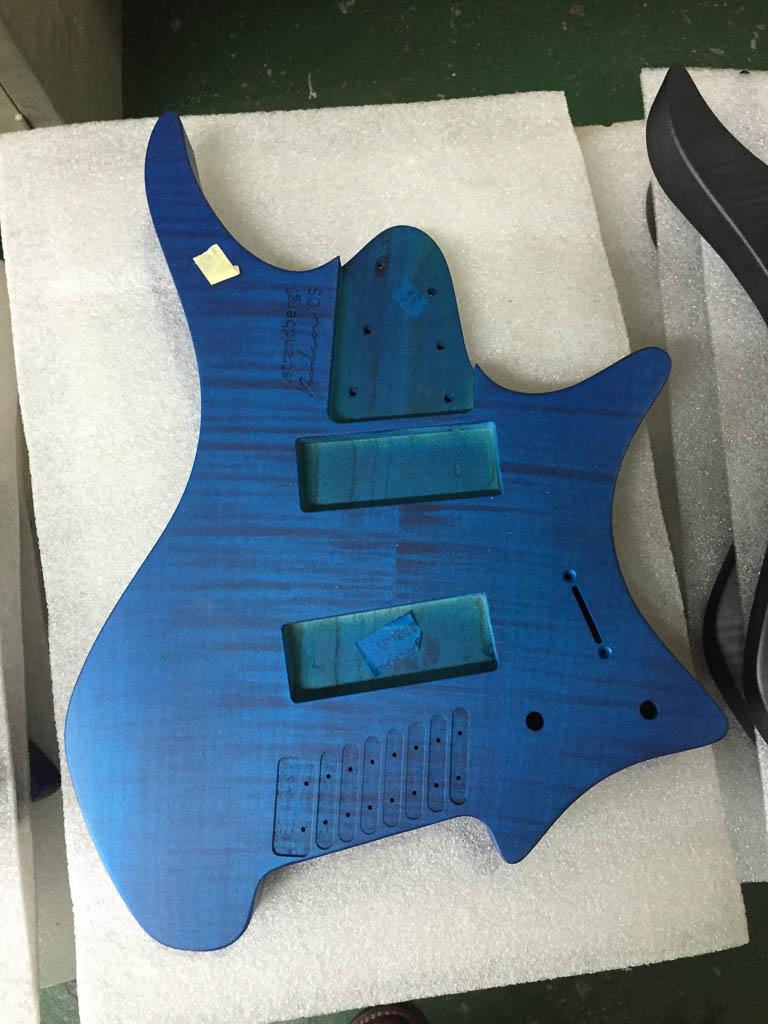 Close up of Blue 8 string body; Photo: Courtesy of Ola Strandberg[/caption]