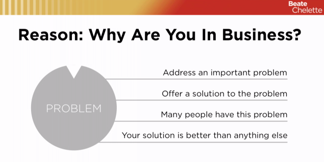 To help figure it out, ask yourself a few more questions, like who needs your business, and what are they currently doing without it? What is the important problem that you're solving? How many people have this problem?