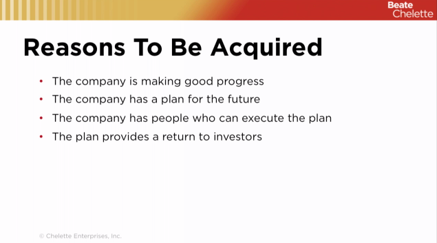 Finally, you'll want to do some planning for the future -- including the very real (and very lucrative) reality that your business, if it's strong enough, could eventually be acquired. So ask yourself one more question: