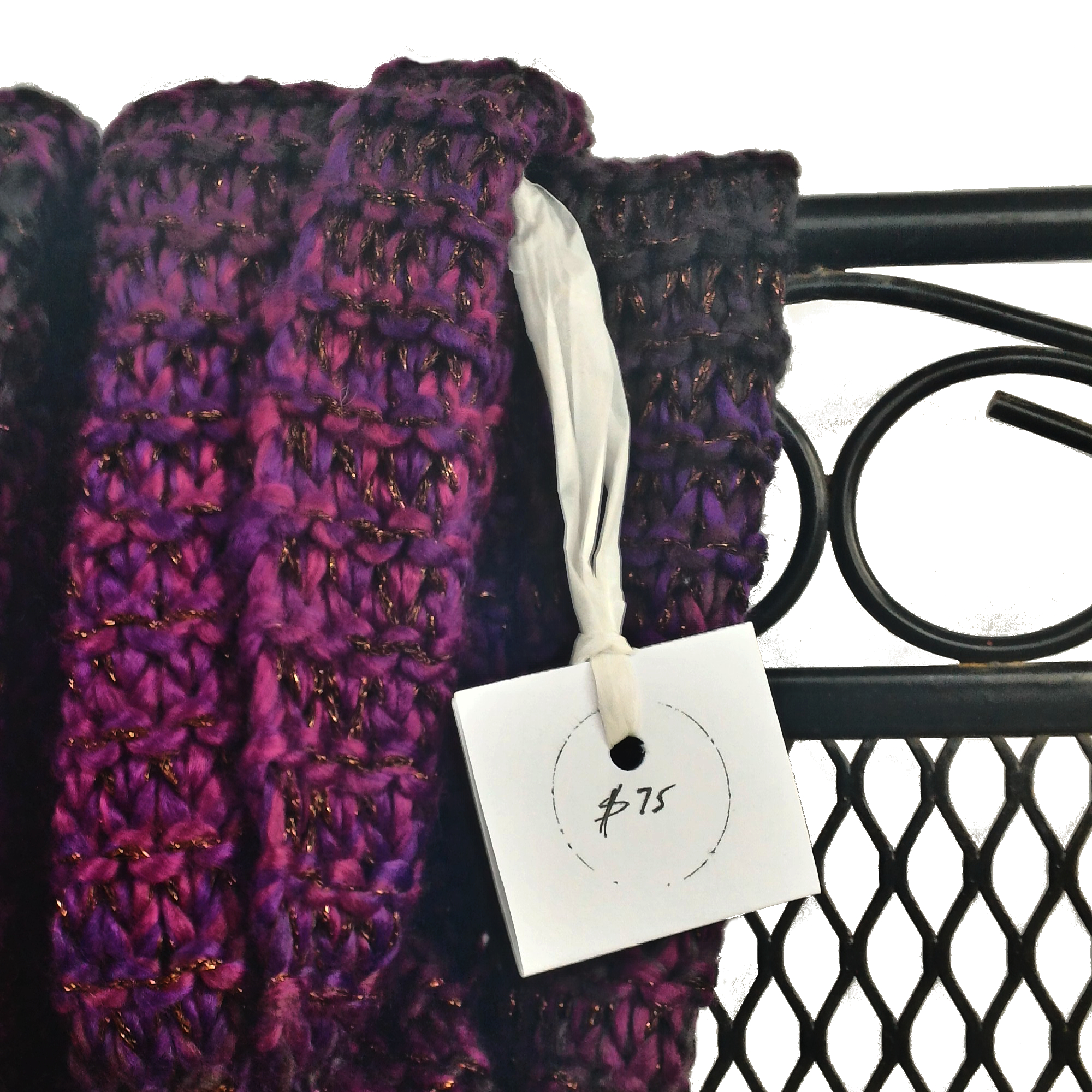 Step 4: Lastly thread your strip of plastic bag through the hole of the business card using a slip knot or other method of your choice. Then add a price by hand with a black ink pen or other color ink.