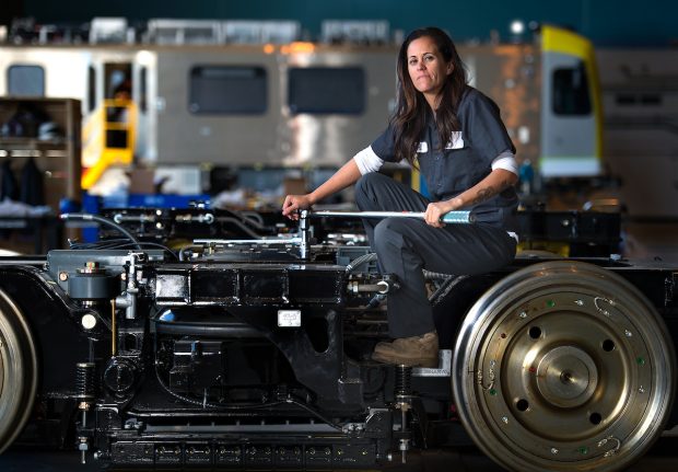 Ami Rasmussen is an interior assembly foreman at the Kinkisharyo railcar factory in Palmdale, CA and mother of two. It wasn't until her daughters were older that she was able to fulfill a lifelong dream to join the U.S. army serving as a light vehicle mechanic. Post-service and with established experience, she now works on the Interior 2 team, with seven other men. “We probably touch the trains more than anyone else,” Ami says. “There is no typical day, here. We install seats, the rear locker, grab bars, pretty much anything you grab onto inside the train. We’ll build the actual locker, and others will install the electrical components. The tools I use vary, from screwdrivers to torque wrenches, to drills, to rivet guns.” Ami admits that there are pros and cons to working with a majority male workforce but being in charge of 78 men in the military, she thought to herself 'I got this.' Read more of her story here.