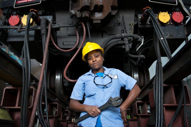 Ruby Diaz a quality control technician at the Kinkisharyo railcar factory in Palmdale, CA., recently promoted after establishing herself as an electrical worker. She worked with thick, heavy copper wires, oftentimes having to withstand vibrations from the moving trains. “I was a little intimidated with so many male coworkers,” Ruby says. “But I thought, why not take the challenge. It’s hard for women, they feel they don’t have enough strength, or power, or dedication. It is a tough and heavy job. But women can work just as hard as anybody. Women shouldn’t be intimidated.” Read more of her story here.
