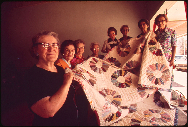Image: Members of the Golden Circle Senior Citizens Club of Fairmont holding quilt they made. May 1973, by Charles O'Rear, via the Smithsonian.[/caption]