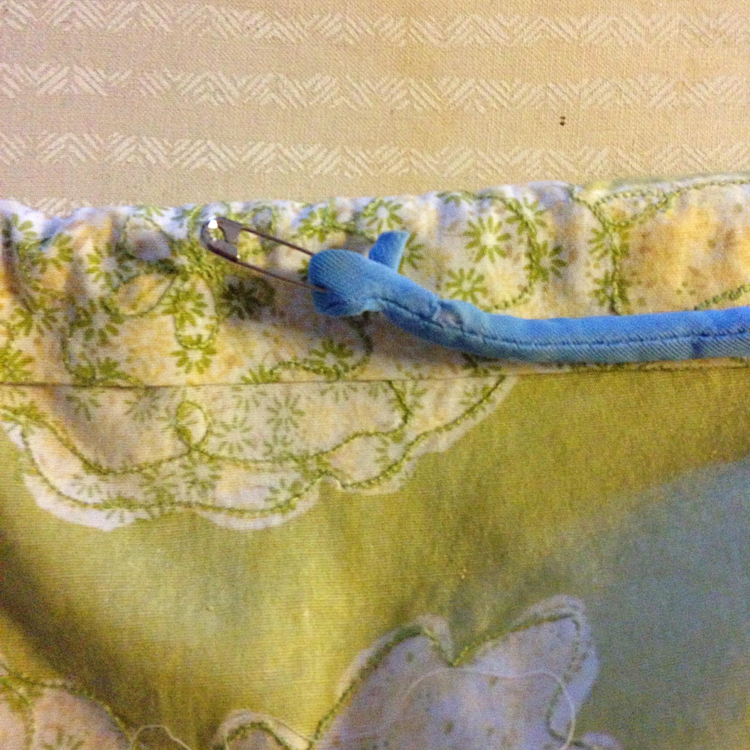 5. Now, take a safety pin and clasp it to the end of the fabric belt.