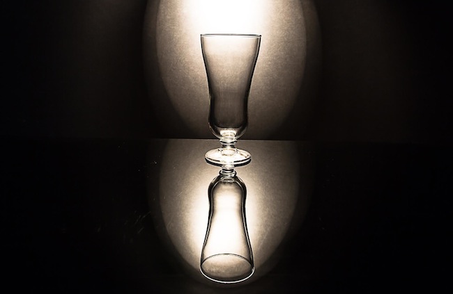 Next, Andrew built his shooting table using a piece of black plexiglas and a layer of glass. “I placed the black plexi under the glass and placed my glass on that surface after checking to make sure that everything was clean and spotless.” With his glass, table, and light in place, Andrew had one more element to consider — the background. He opted for a basic foam core and placed it behind the table. “The tricky part is finding out how far away the background should be from the table. If you place it directly on the table, chances are you aren’t going to get the results you want.” The reason this step is so important is because the light source, which as we know is a small dot, is to be aimed at the background, not at the glass itself. Aiming it at the subject would cause unwanted glare and shadows. “The light on the boom travels over the glass and is just shining light on the wall behind the glass which avoids unwanted shadows.” Placing the foam core 6-8 inches behind his shooting table gave Andrew the effect he wanted. “ By aiming the light at the background, I was able to get the light to bounce off of it, through the glass and onto the plexi.”