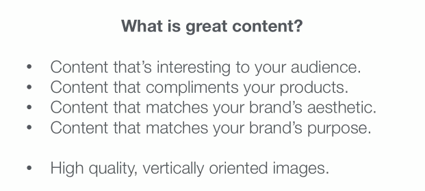 Your content should also match your brand's purpose. What does your brand stand for? What do you want to be associated with?